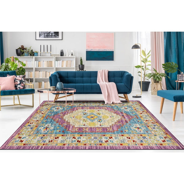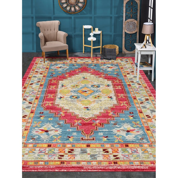 Our collection features traditional and transitional designs in rich vibrant tones. Bright hues give these rugs an edge making them a standout piece for any room. Vacuum regularly to prevent dust and crumbs from settling into the roots of the fibers. Brushless attachment is recommended. Avoid direct and continuous exposure to sunlight. Use rug protectors under the legs of heavy furniture to avoid flattening piles. Do not pull loose ends, clip them with scissors. Turn carpet occasionally to equalize wear. Clean spills immediately; if liquid, blot with clean, undyed cloth by pressing firmly around the spill to absorb as much as possible. For hard to remove stains, professional rug cleaning is recommended. Store in a dry, well-ventilated area. Use of a rug pad is recommended.,