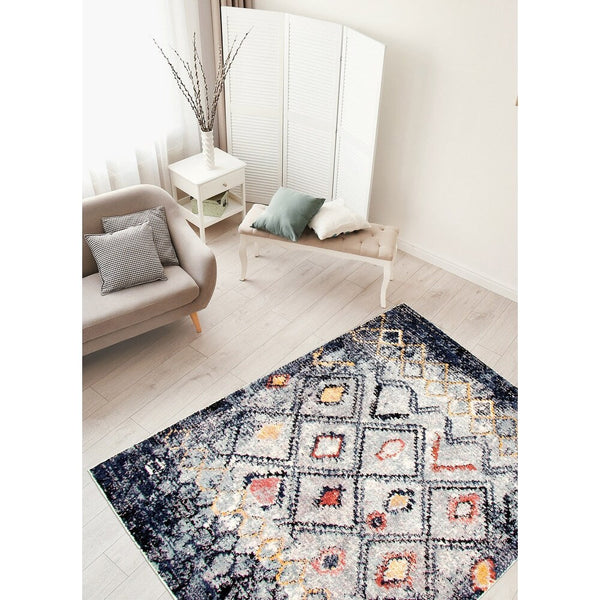 Diamond Pattern Navy Classic Soft Rug