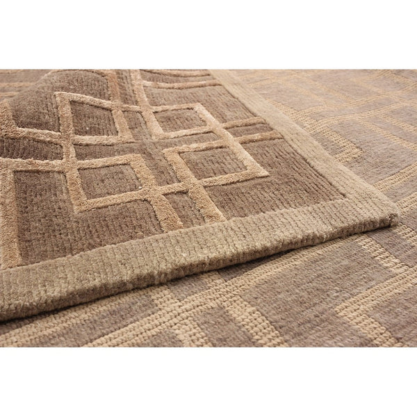 Hand-knotted Silk Touch Brown Silk, Wool Soft Rug
