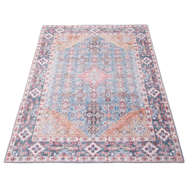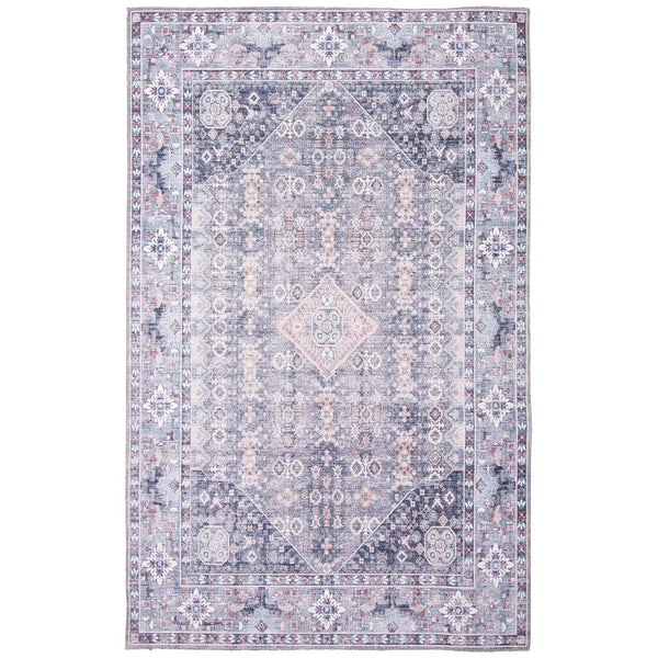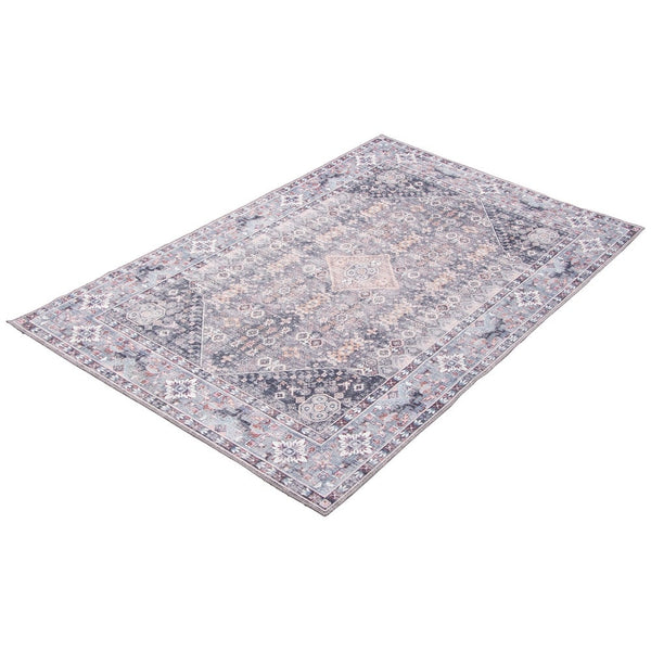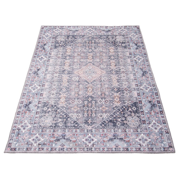 Grey Blue Machine Washable Bohemian & Eclectic Soft Rug