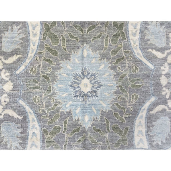 Crafted of wool, this stunning rug will enhance the style of your home. With a blend of lt. blue and ivory hues, this rug brings a refreshing style to your interior decor. The geometric, oriental pattern of this hand-knotted rug provides a simple background to your room.
