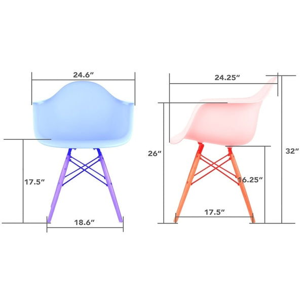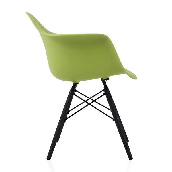 CozyBlock DAW Scandinavian Molded Plastic Dining Arm Chair with Black walnut Wood Eiffel Legs - Mid-Century Modern Accent Armchair - Ideal for Home, Bar, Cafe, Office, Reception, Waiting Area. Some designs were ahead of their time. Considered the chair of tomorrow both for its design and its innovative single-mold manufacturing process, the DAW Scandinavian Arm Chair is inspired by one of the most iconic mid-century furniture designs. Created in the spirit of economy and affordability, its unique shape was designed to spread the sitter's weight and pressure evenly. The deep seat and waterfall edge provide additional comfort as the design shapes itself around the body's curves, while its Black walnut wood Eiffel legs add a classic touch. If you have done away with formality in your home, the DAW Scandinavian Arm Chair is that one piece of furniture that exemplifies the "less is more" ethos. It's the ultimate seat that goes well in a variety of residential and commercial settings: as a home office chair, a statement reading chair, an entryway slipper seat, a cafe chair, a reception area chair, set a few as office brainstorming chairs, or anywhere a decent seat is needed. Product Dimensions- Overall: 32" H x 24.6" W x 24.25" L. Seat: 17.5" H x 17.5" W x 17" L. Arm: 26" H x 24.6" W. Weight Capacity: 250 lbs. Please take precise measurements of your table before placing an order. Package Included-Chair Seat, Chair Base (base is fully assembled), Installation Hardware and Instruction.