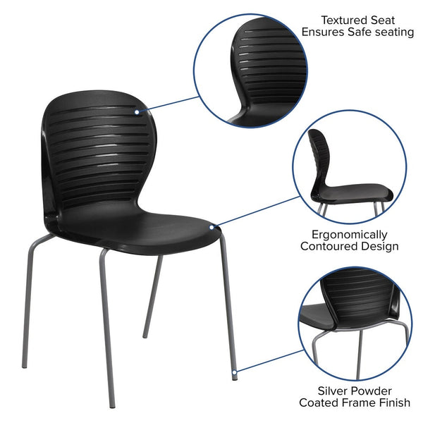 When in need of a space-saving seating solution that is either permanent or temporary, stack chairs have been proven to be beneficial. Stack chairs are a popular choice for many businesses that include hotels, schools, restaurants, cafeterias, and offices. This chair features a contemporary ribbed back design. The textured seat ensures safe and comfortable seating. With the ability to quickly store the chairs, it allows for the space to be used again for other purposes or when cleaning is needed. This heavy duty plastic stack chair is sturdy in construction to withstand regular use and frequent stacking. To make transporting even easier, equip yourself with the appropriate sized stack chair dolly.