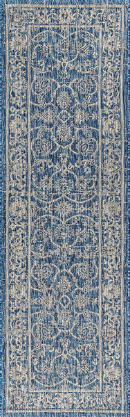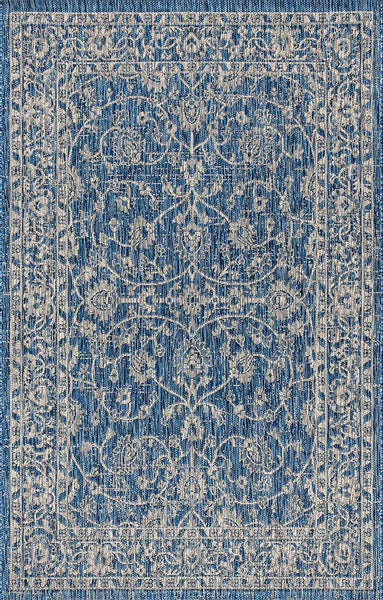 Palazzo Vine and Border Textured Weave Indoor/Outdoor Navy/Gray